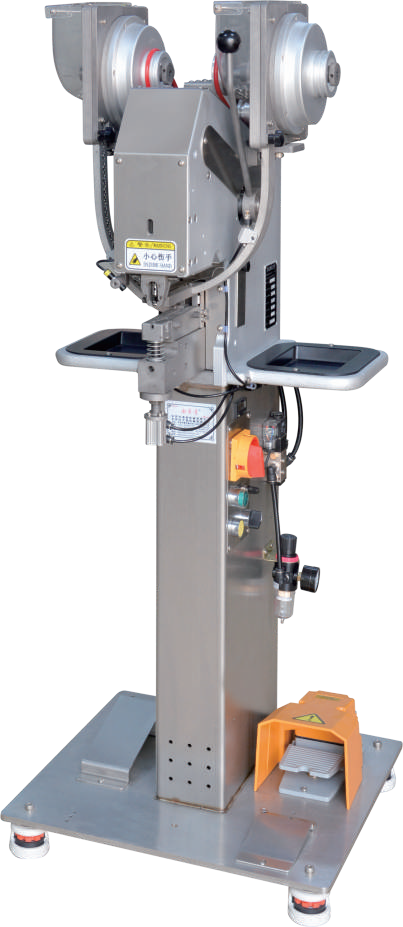 把鈕扣放進對應(yīng)的2個料斗,開機會自動轉(zhuǎn)動料斗,自動把鈕扣排滿軌道,自動把鈕扣送到上下模具,何服電機驅(qū)動,只要踩下踏腳開關(guān)便可裝訂自如,簡單易用。更換配件可平裝訂其它鈕扣。